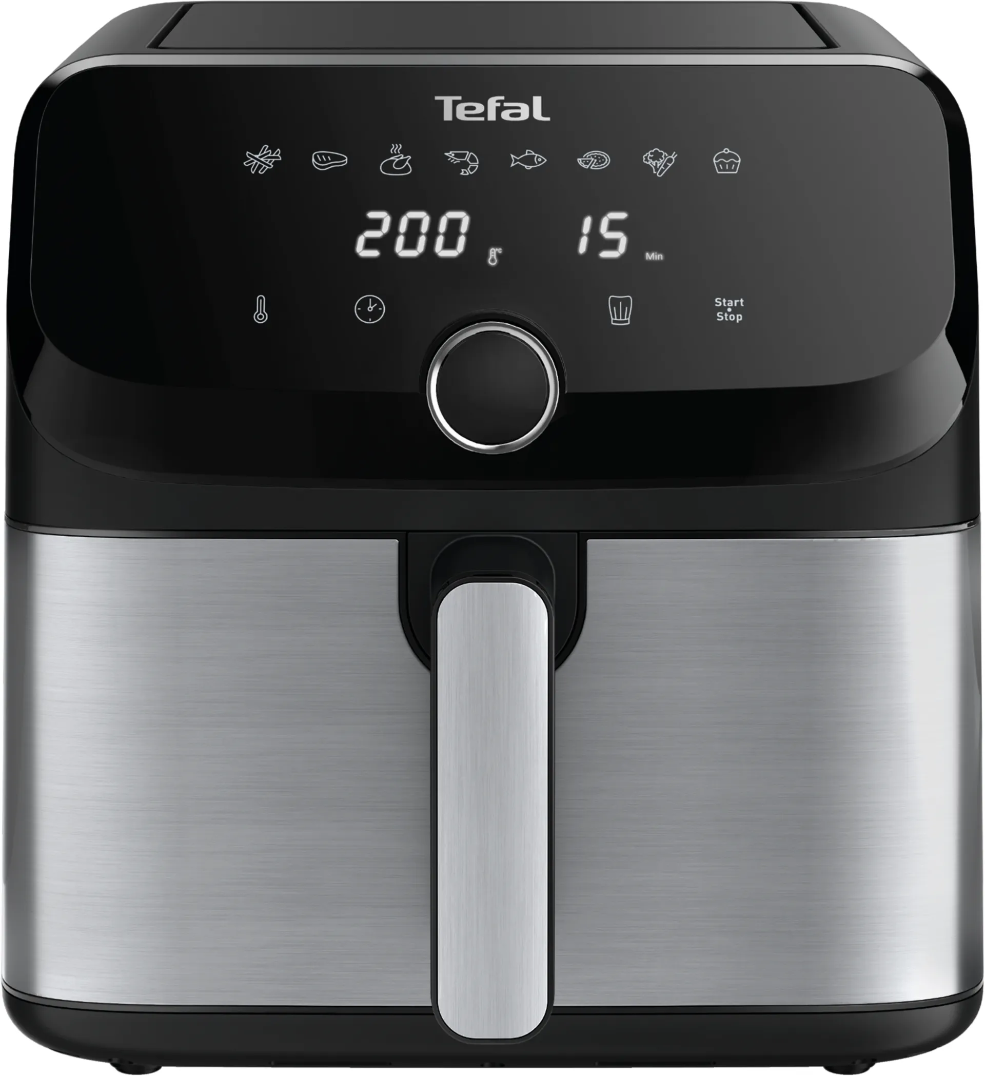 هواپز تفال مدل EY855 با ظرفیت ۷.۵ لیتر، مناسب برای خانوادههای پرجمعیت طراحی شده است. توان ۲۰۲۰ وات و قابلیت تنظیم دما تا ۲۰۰ درجه سانتیگراد، آن را به گزینهای ایدهآل برای سرخکردن، گریل و پخت انواع غذاها بدون نیاز به روغن تبدیل کرده است. این دستگاه دارای ۸ برنامه پخت پیشفرض از جمله مرغ، گوشت، ماهی، سبزیجات، سیبزمینی، میگو، پیتزا و دسر است. تایمر ۶۰ دقیقهای، قابلیت شستوشوی سبد در ماشین ظرفشویی و سیستم قطع خودکار از دیگر ویژگیهای آن به شمار میرود.